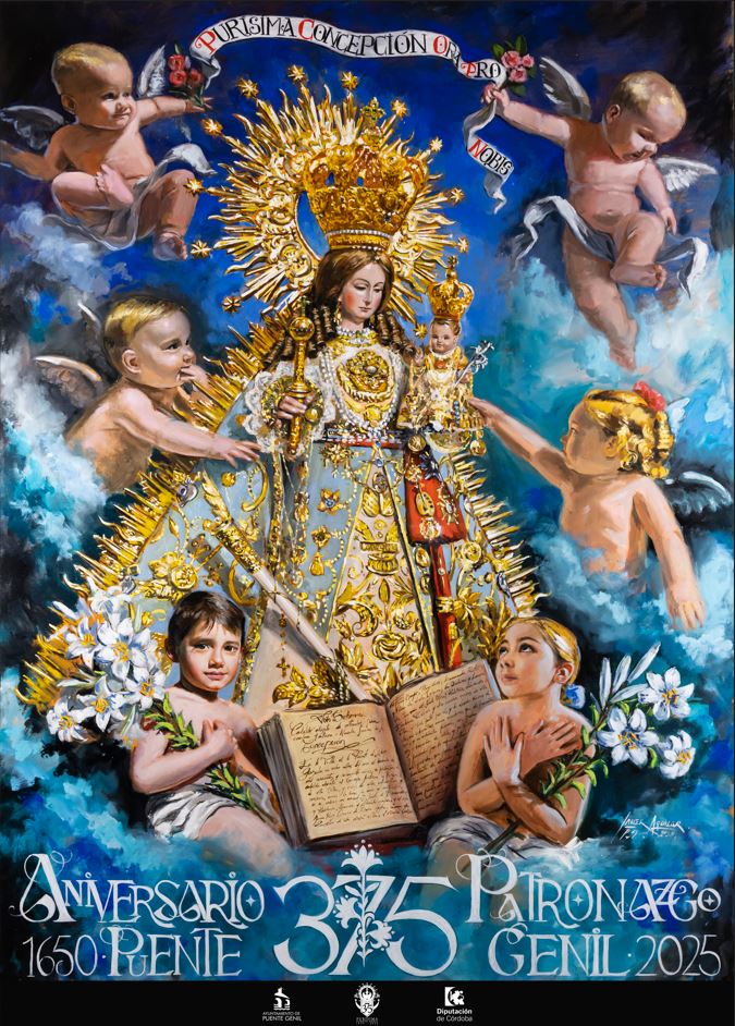La celebración del 375º aniversario del patronazgo de la Purísima Concepción sobre Puente Genil ya ha comenzado a escribirse en imágenes. Desde su presentación en el Santuario de la Concepción, el cartel conmemorativo ha cautivado a devotos y amantes del arte sacro.